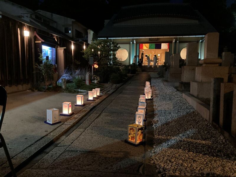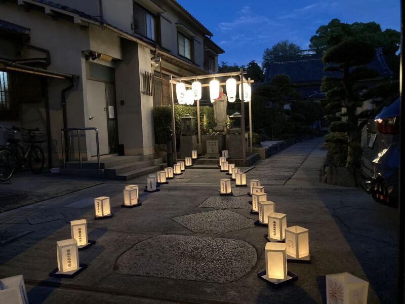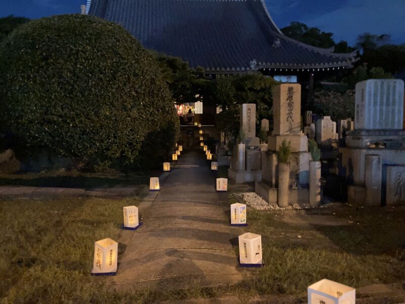 したでらまち地蔵盆献灯会は、ことしも天候に恵まれ、無事、開催することができました。20を超えるお寺がいっせいに灯をともす――。平和と安寧を祈る灯籠は幻想的で、心を癒してくれます。ことしもキッチンカーや遊べる“屋台”があって、多くの子供たちが楽しんでいました。先の見えにくい時代だけに、灯篭に込めた願いのとおりの社会になるといいですね(写真上は浄國寺)。
