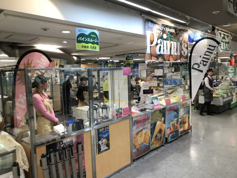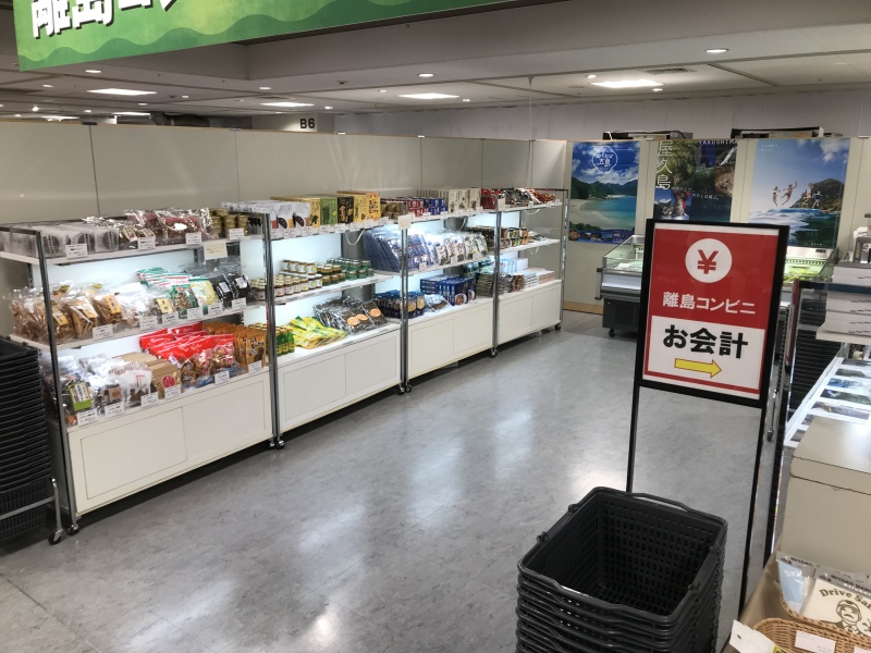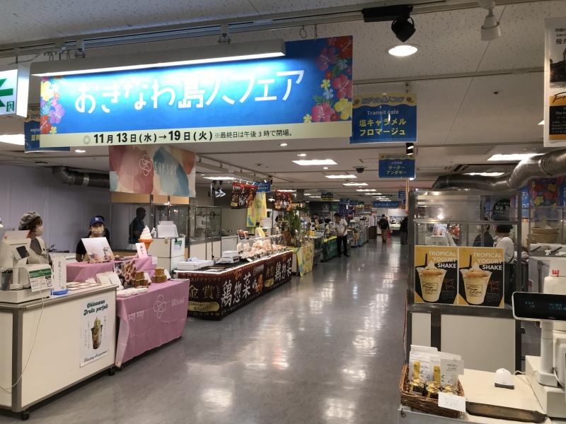 イートイン「離島の海鮮食堂」では離島の海鮮料理に地ビールが楽しめます。他に泡盛を楽しめる「泡盛BAR 比嘉邸」や「もずくそば くんなとう」なども。「おきなわ島人(しまんちゅ)フェア」のコーナーには島らっきょひとくち餃子や塩キャラメル、サーターアンダギー、から揚げなど、多彩です。「離島コンビニ」には特産品がたくさん。目新しくて楽しい時間をいかが?