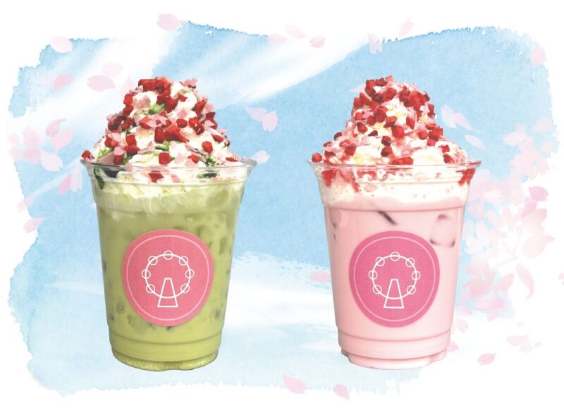 さくらドリンク、抹茶・ストロベリー各700円(税込)