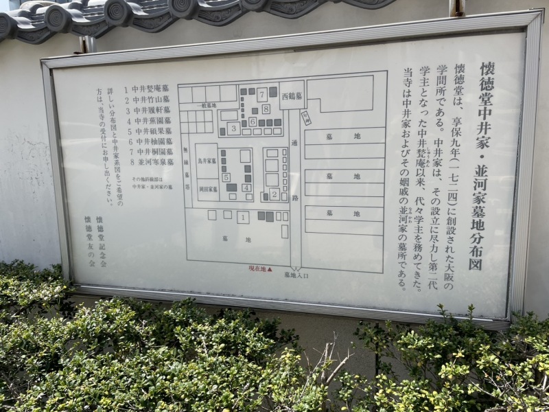 4月19日(土) 天王寺区上本町の誓願寺で恒例の「懐徳忌」が執り行われました。誓願寺には、江戸時代の大坂で140年あまり活動した漢学の学校「懐徳堂」を隆盛させた二代目学主・中井甃庵(しゅうあん)をはじめその息子で四代学主を勤めた中井竹山(ちくざん)、その子孫の墓があります。「懐徳堂」は大阪大学の祖、富永仲基(とみながなかもと)や山片蟠桃(やまがたばんとう)を輩出、大坂学術の発展と商道徳の育成に貢献しました。