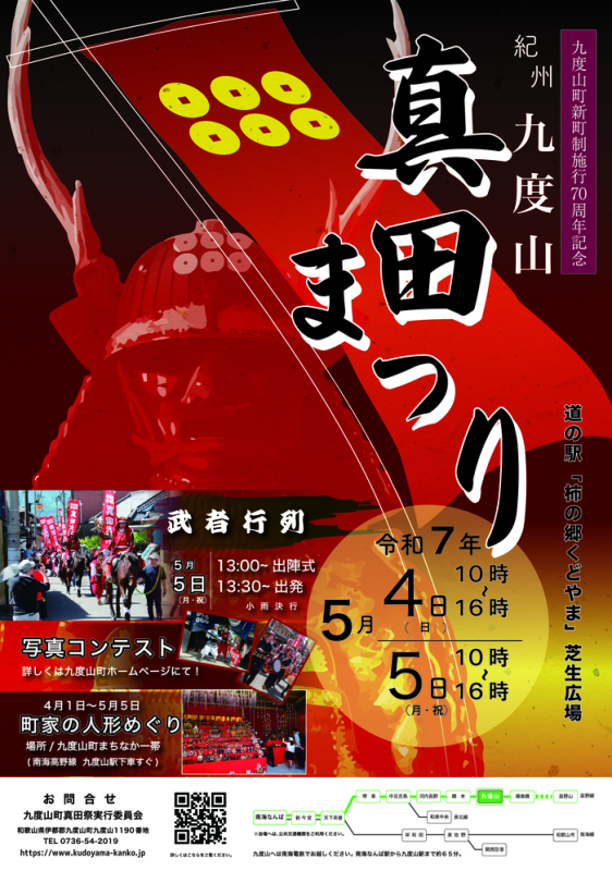 令和7年「紀州九度山真田まつり」 Posted on 2025年5月5日2025年5月5日 by うえまちウェブ編集者 戦国の波乱に満ちた時代を生きた真田昌幸・信繁(幸村)父子を偲んで古くから紀州九度山で開催される「真田まつり」。毎年5月5日のこどもの日にあわせ5月4日、5日の2日間開催されています。真田の市や武者行列など九度山町でもっとも大きいお祭りの一つとなっており、鉄砲隊演武や武者行列もあります。今年もたくさんの来場がありました。 真田幸村役は天王寺区在住で「うえまち新聞」にもご縁のある元OSKトップスター「桜花昇ぼる」さん。ステージでもひときわ映えていました。
