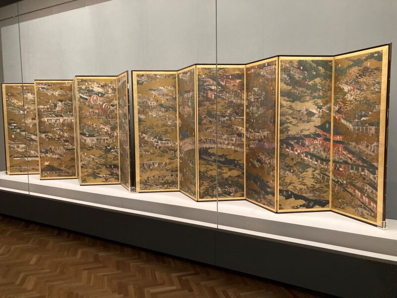 いくつも目玉があり書き切ることはできませんが、内覧会に見ることができた主なものだけでも「金印」「火焔型土器」「信貴山縁起絵巻」「孔雀明王像」「洛中洛外図屏風(舟木本)」「動植綵絵」など「一生に一度」は見るべきものがずらり。ほかにも「燕子花図屏風」「唐獅子図屏風」「雪松図屏風」「伝源頼朝像」などが順次展示されます。