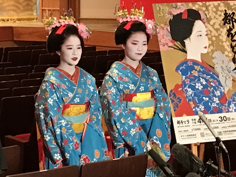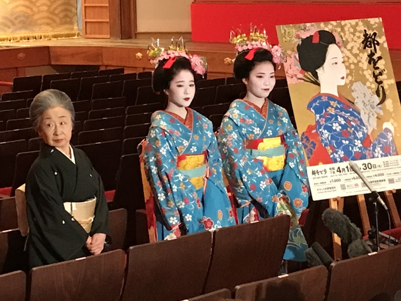 総仕上げの稽古「大ざらえ」でのインタビューでは、総をどりの柚子葉(ゆずは)さん、初舞台の佳つ若さんの二人の舞妓さんが舞台への抱負を語りました。柚子葉さんは大阪の出身の21歳。活躍を期待です。また、師匠の五世井上八千代さんからは「都をどりをはじめとして京都がテーマパークのようになってくれれば嬉しい」とのお言葉も。