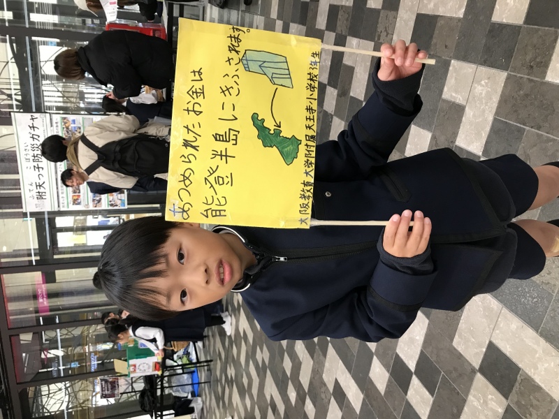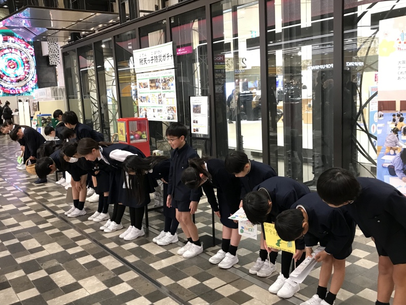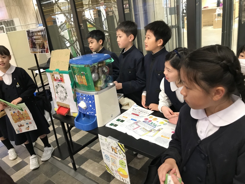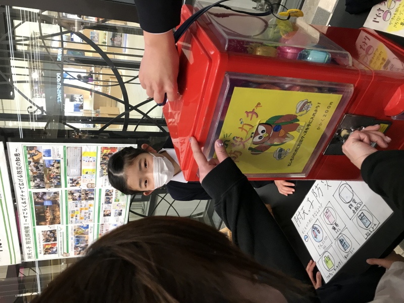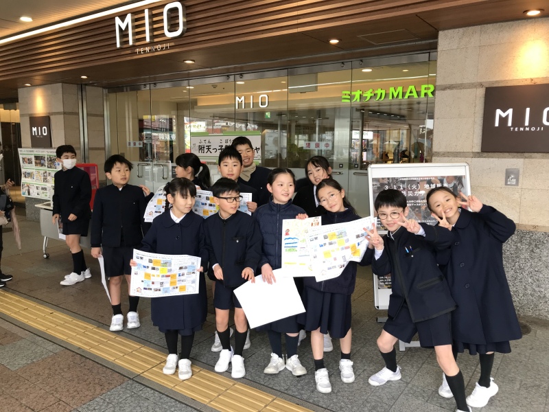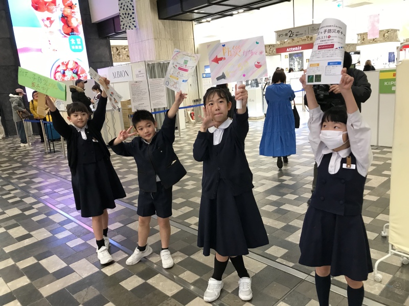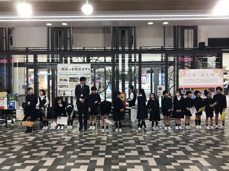東日本大震災から14年を迎えた今日、3月11日。あべのハルカス近鉄本店2階ウエルカムガレリアと天王寺ミオ1階公園口で大阪教育大学附属天王寺小学校生による「附天防災ガチャ」イベントが開催されました。防災に関するグッズの入った「ガチャ」は1回200円。売上の一部は能登半島地震被害の支援金とすることになっている。