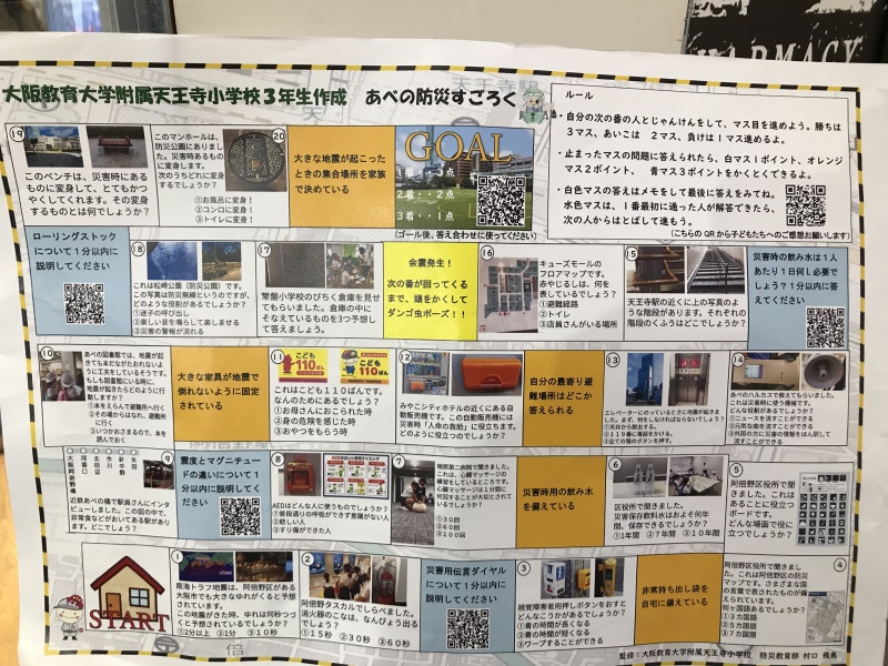 大阪教育大学附属天王寺小学校では従前から防災教育として、防災宿泊訓練や防災クッキング、スタンプラリーなどのイベントを開催。地震・津波・台風などの自然災害への防災を学んできた。