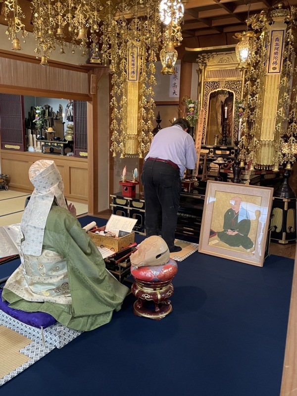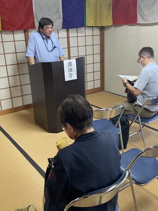 法要は午後1時からの山中ご住職による墓前での読経に始まり、本堂での回向、森田雅也関西学院大学教授の記念講演へと続きます。今年の講演のタイトルは「西鶴と堺」。「西鶴諸国ばなし」や「日本永代蔵」などの西鶴作品と「堺」との関わり、朱印船貿易にはじまる国際貿易の時代背景のお話や「朱座」の話、私貿易(密貿易)のお話まで、幅広い話題でとても興味深く聞かせていただきました。