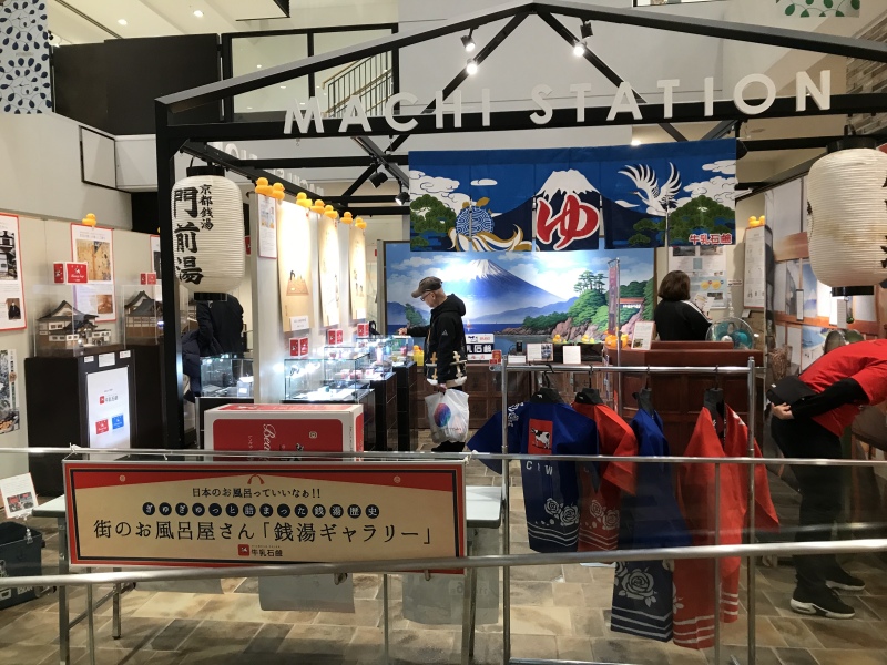 7階の南側「街ステーション」にはたくさんの銭湯グッズやアイテムを展示している「銭湯ギャラリー」。北側「街ステーション」では銭湯グッズの販売。銭湯の漫画で有名な ラッキー植松さん もお越しにになっています。また東側ウォールでは銭湯ののれん人気投票「のれん総選挙」。とても面白い体験ができそうです。