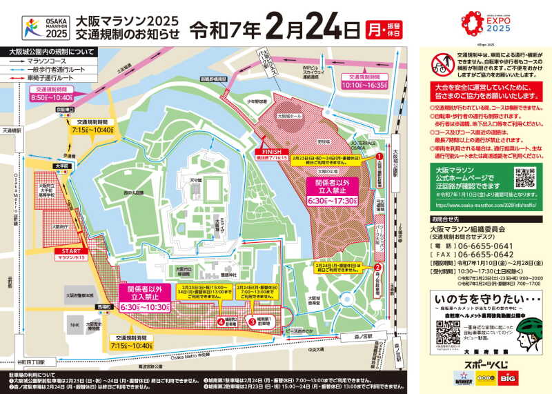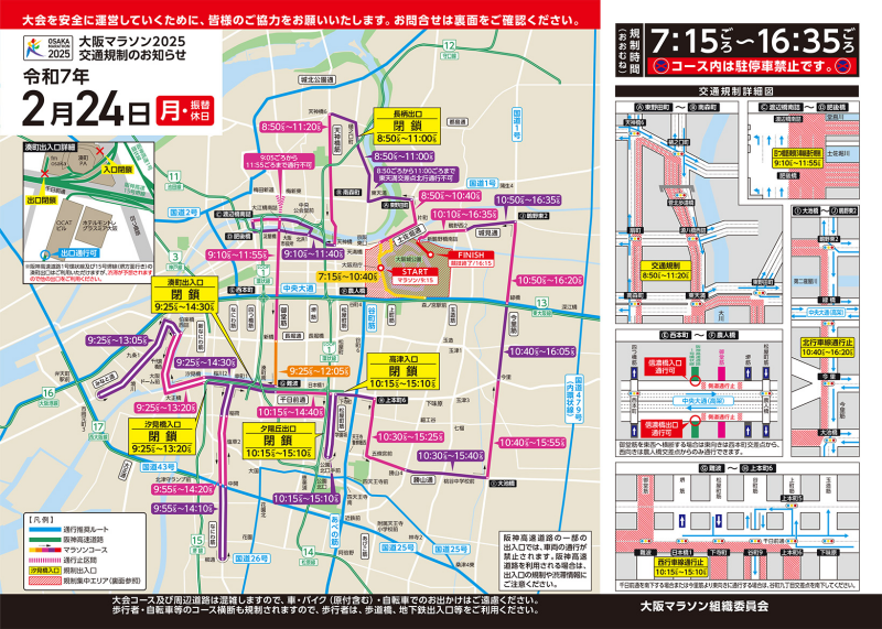 2月24日日の大阪マラソンでは、交通規制による駐輪、駐車サービスの休止など、各地で通常サービスが受けられない可能性があります。移動のご予定がある方は、事前にお調べください。