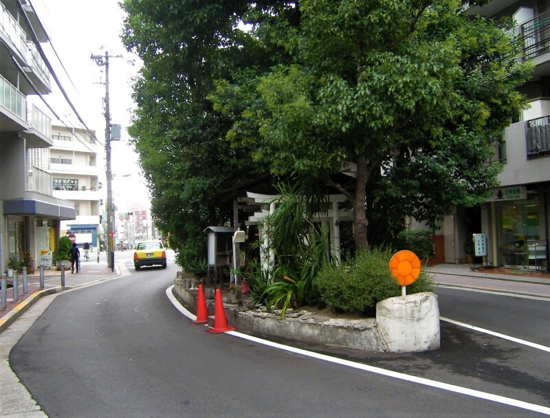谷町7丁目のクスノキ通りにある「楠木大神」(写真下)はもともとお寺の境内にあり、道路拡張の際、伐採される予定だったのがそのまま残されたそうです。先の榎木大明神と同じく、こちらも巳(みい)さんと呼ばれる蛇がご神体。大阪市内の路傍・路中にある木の多くが蛇にまつわる伝承を伴っています。