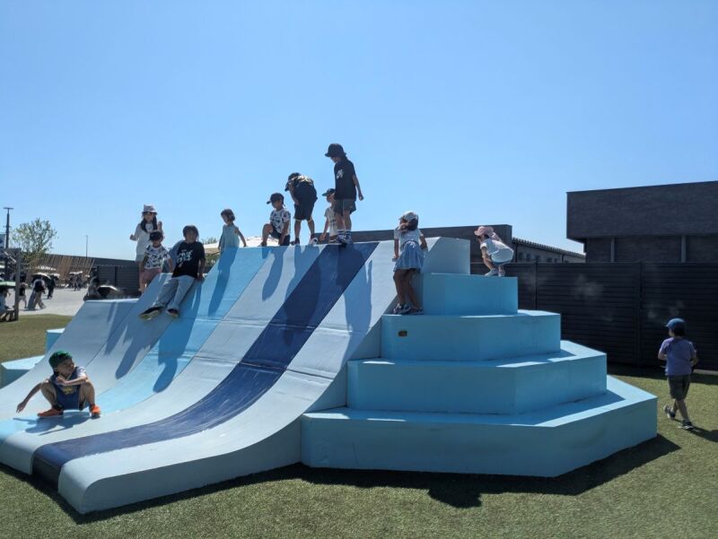 最初は遊具で滑って遊んでいたけれど、最後はびしょびしょになるまで、穴の前を陣取っていました。
