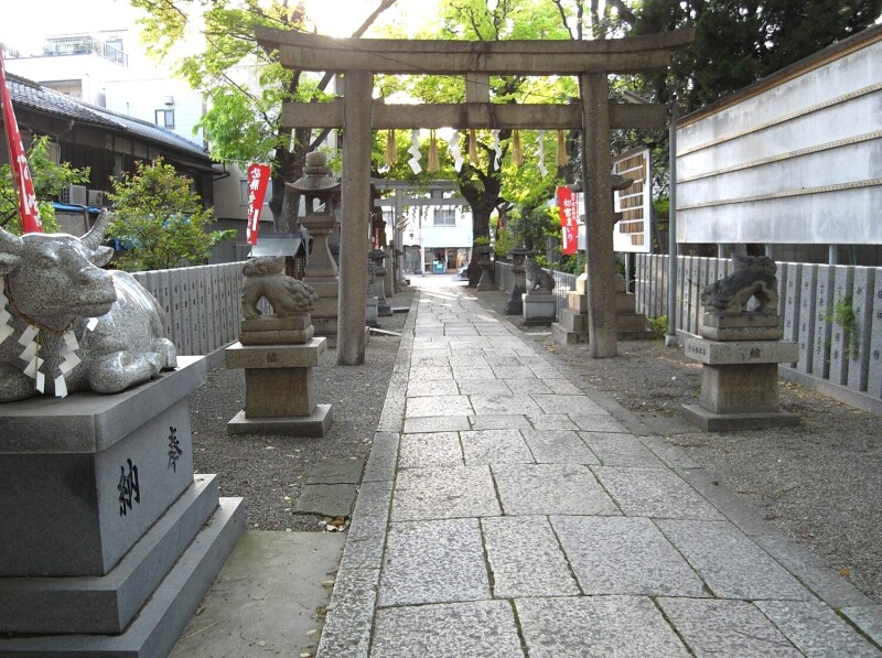 天下茶屋で茶を点てたのは利休ですが、彼は武野紹鴎と呼ばれる人物の弟子で、紹鴎から「詫び茶」の精神を引き継ぎました。その紹鴎が茶室を建て隠棲したのが、天下茶屋跡の目の前にある天神ノ森天満宮(紹鴎森天満宮=写真下)です。上町台地の南に、茶道史に残る場所があるのは本当に面白いですね。