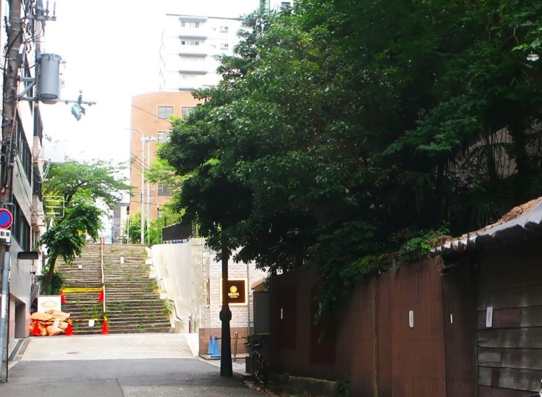そんな坐摩神社行宮から東に少し行ったところに、旧高倉筋石段(写真下)と呼ばれる古い石畳の階段があります。昔は、このような石段が大川沿いに並んでいたのでしょう。痛みが激しく坂に改修してもよさそうですが、何ともいえない風情。歴史を感じる場所はいつまでも残したいものですね。