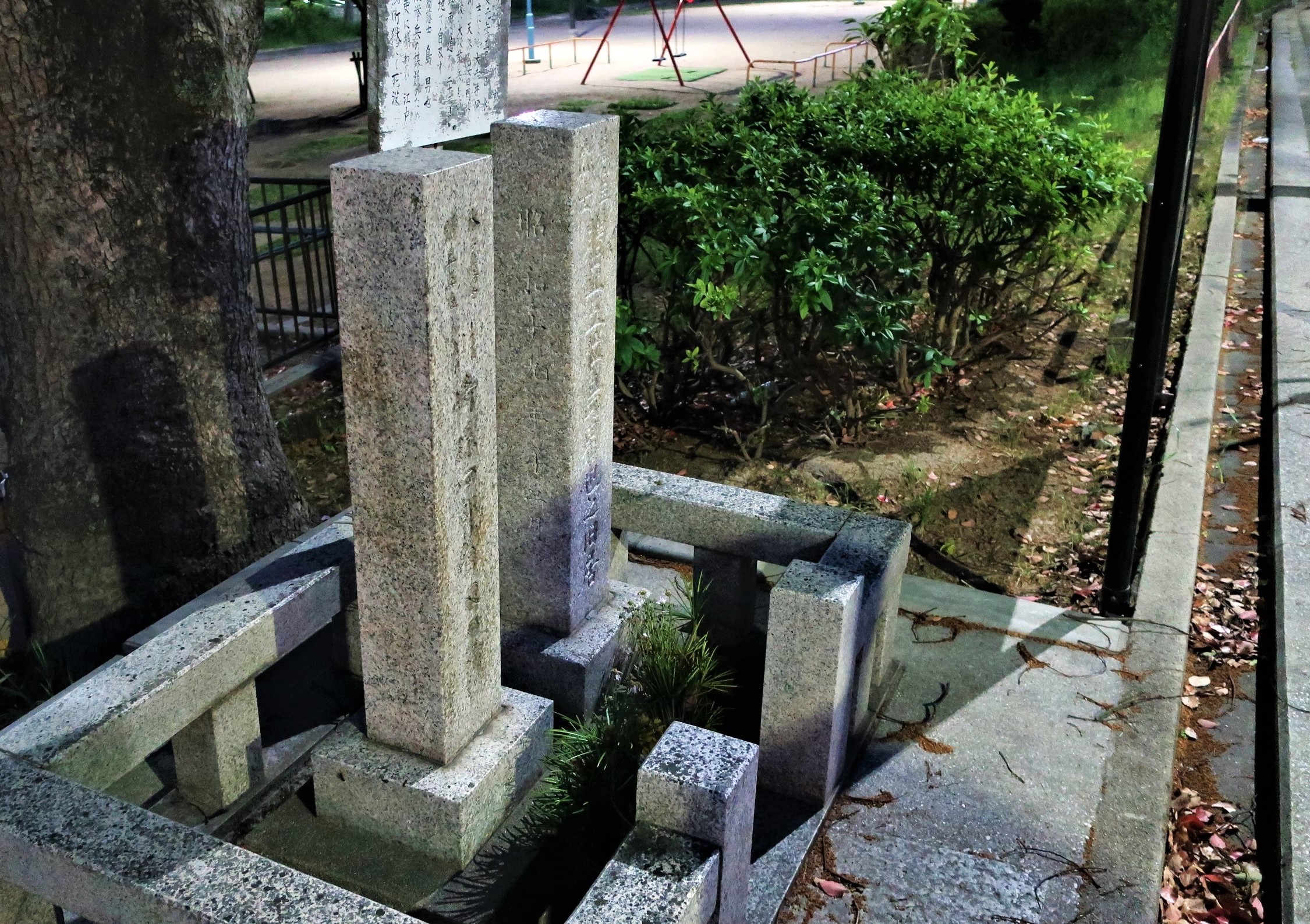このような歴史的な事件とかかわる場所が、上町台地には他にもあります。水戸藩士の川崎孫四郎は桜田門外の変の「大坂連絡役」として活動しました。事件の首謀者たちは大坂での挙兵も計画していたのです。しかし、計画は頓挫し、川崎は自刃。生國魂神社前がその場所で、いまは顕彰碑が建ちます(写真下)。