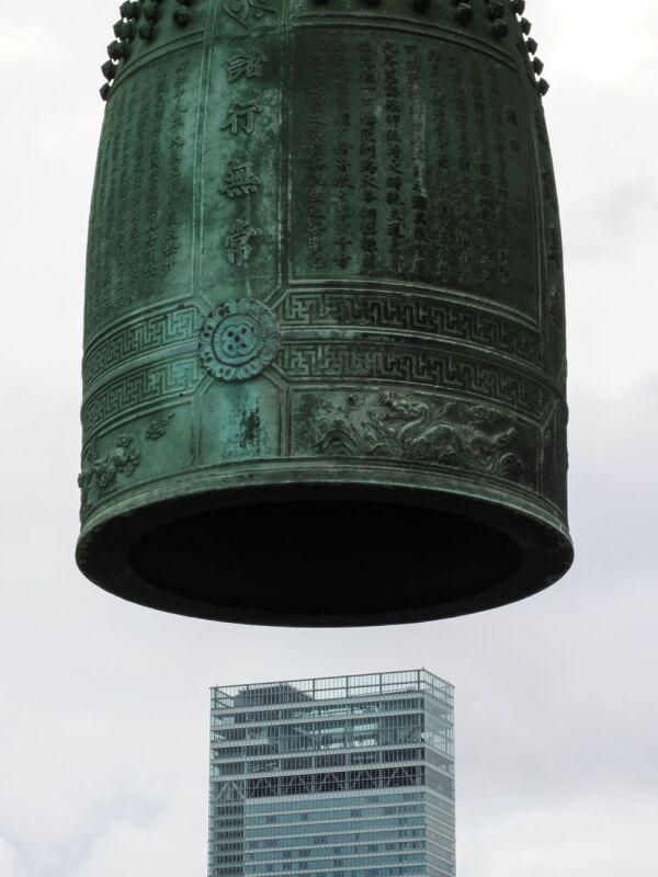 「常に変化する都市」「歴史と変革がくらしの中に存在している証」をテーマに撮影すべく、3日間歩き続け、体力気力の限界に達っした時に訪れた清水寺舞台。そこで目にとびこんできた、鐘とハルカス。曇天ゆえ、一切のムダな要素がない、シンプルな表現ができました。