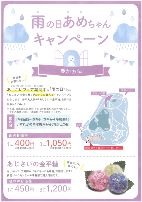 詳細▶雨の日”あめちゃん”キャンペーン ~雨の日は人気の金平糖をおトクにGet!~