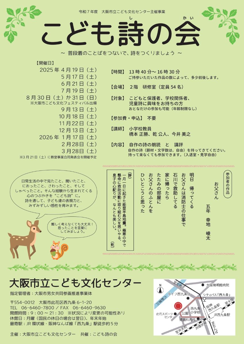→令和6年度 こども詩の会|イベント情報|大阪市立こども文化センター
