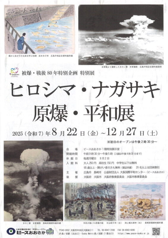 主催:広島市、長崎市、公益財団法人 大阪国際平和センター(ピースおおさか)